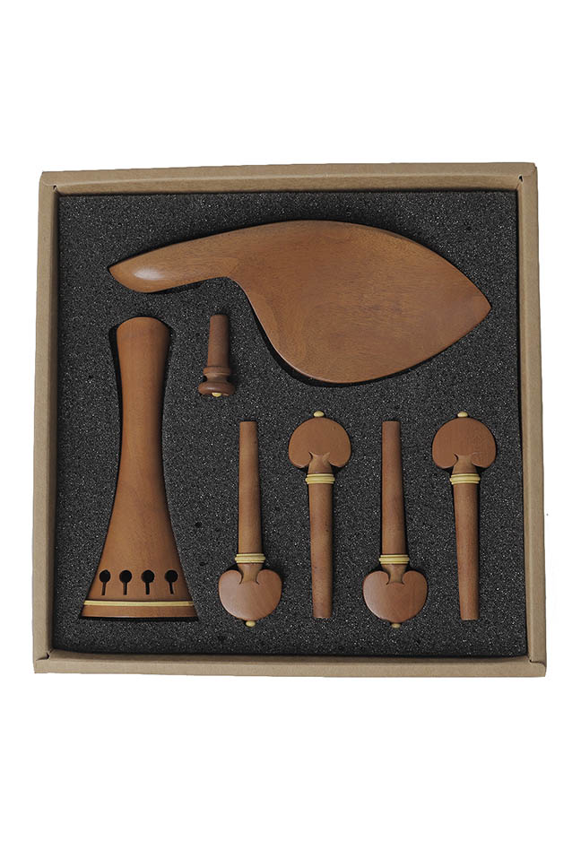 用途/賣點:優選高檔紅木手工制作,紅木自然紋路清晰,顏色漂亮,鑲垛子裝飾,制作精細,紅木材質堅固耐用,手感優良,提升小提琴檔次,四件套配件表面平整,完美配合小提琴的工作。