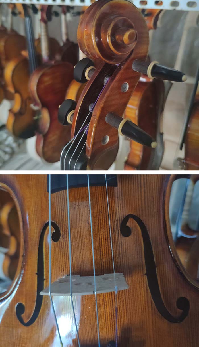 描述:這一批琴無論是從外形還是音質方面來說,都是非常棒的,尤其是共振,更是技高一籌,好像是自帶音響一箱,非常的響亮。這把琴的油漆風格個人非常的喜歡,仿就工藝也做的非常好,看上去像是很有內涵很有年份的琴。總之,這把琴無論是專業演奏,還是當作進階琴來用,都非常的合算,性價比高。